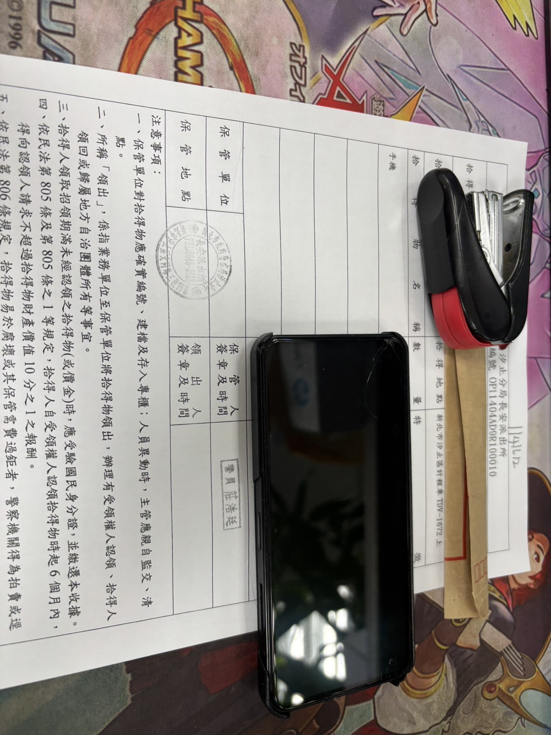 內容資訊:民眾於114年4月14日在新北市汐止區新台五路一段與連興街口拾獲手機1支